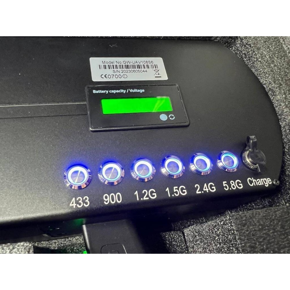 Общая выходная мощность устройства достигает 140 Вт, что обеспечивает значительный радиус действия и высокую эффективность блокировки. Встроенная антенна с высоким коэффициентом усиления (10 дБи) позволяет блокировать дроны на расстоянии до 2 километров.