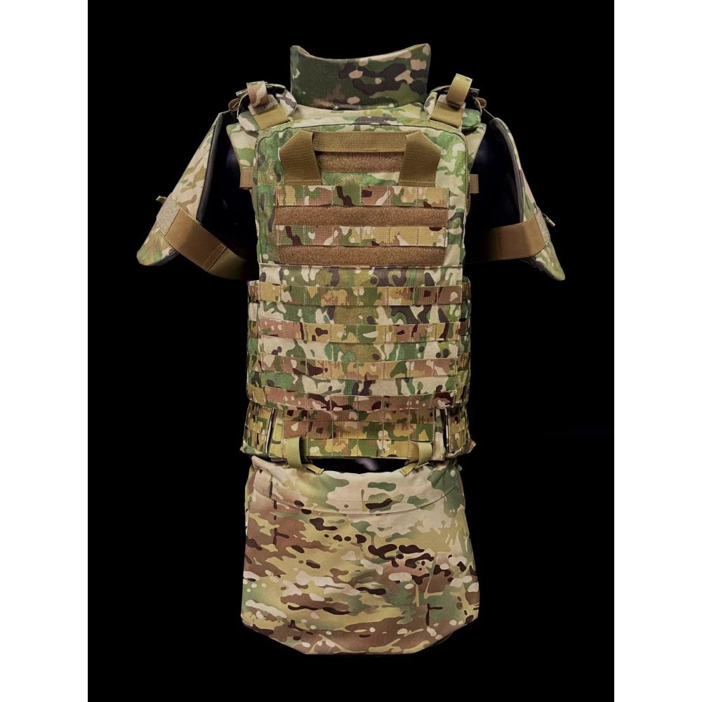 - Фиксируется под бронежилет, защищает грудь и спину.