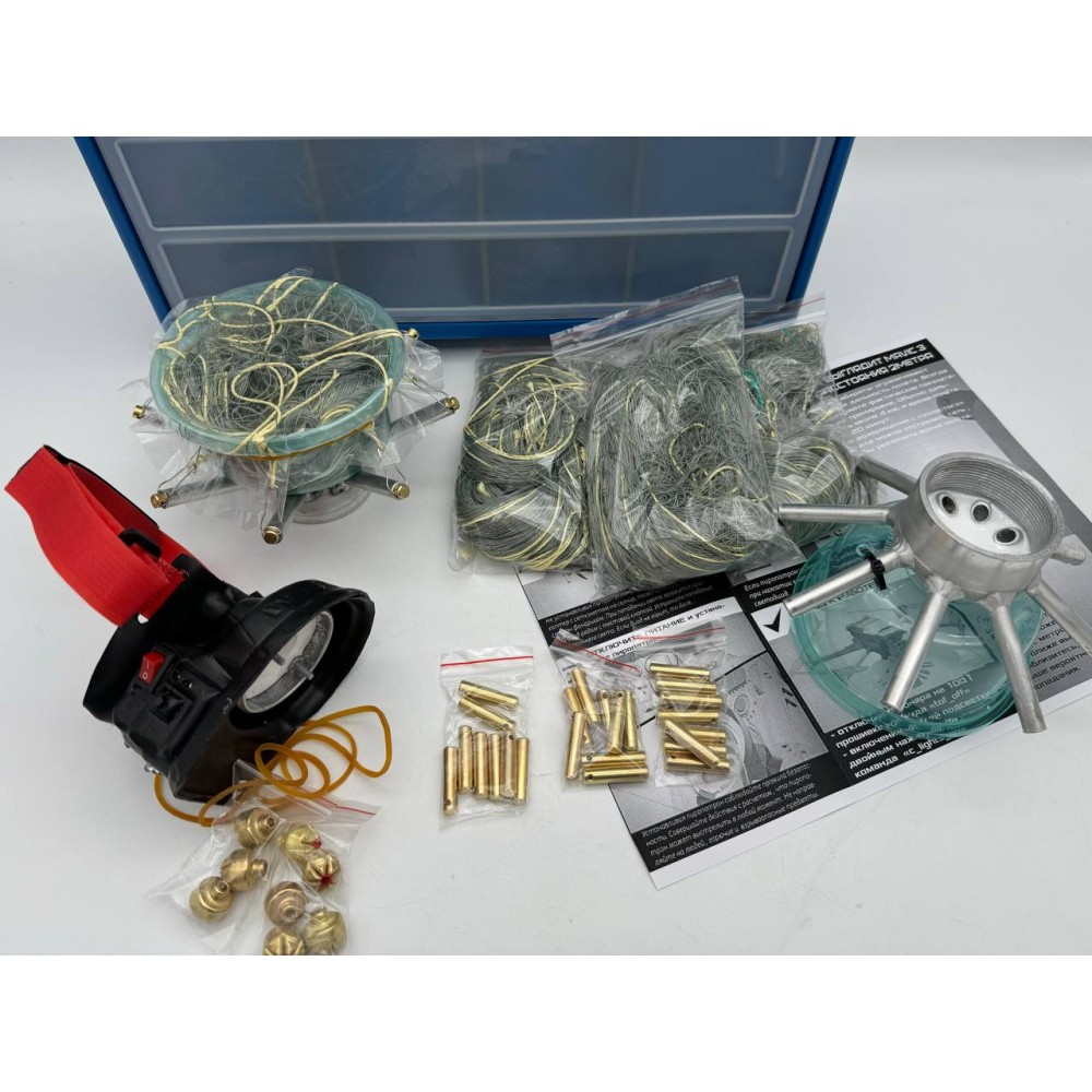 - Стартовый набор: корпус в транспортном кейсе, алюминиевый "паук" с уложенной сетью и грузиками, 5 тренировочных пиропатронов – 1 шт