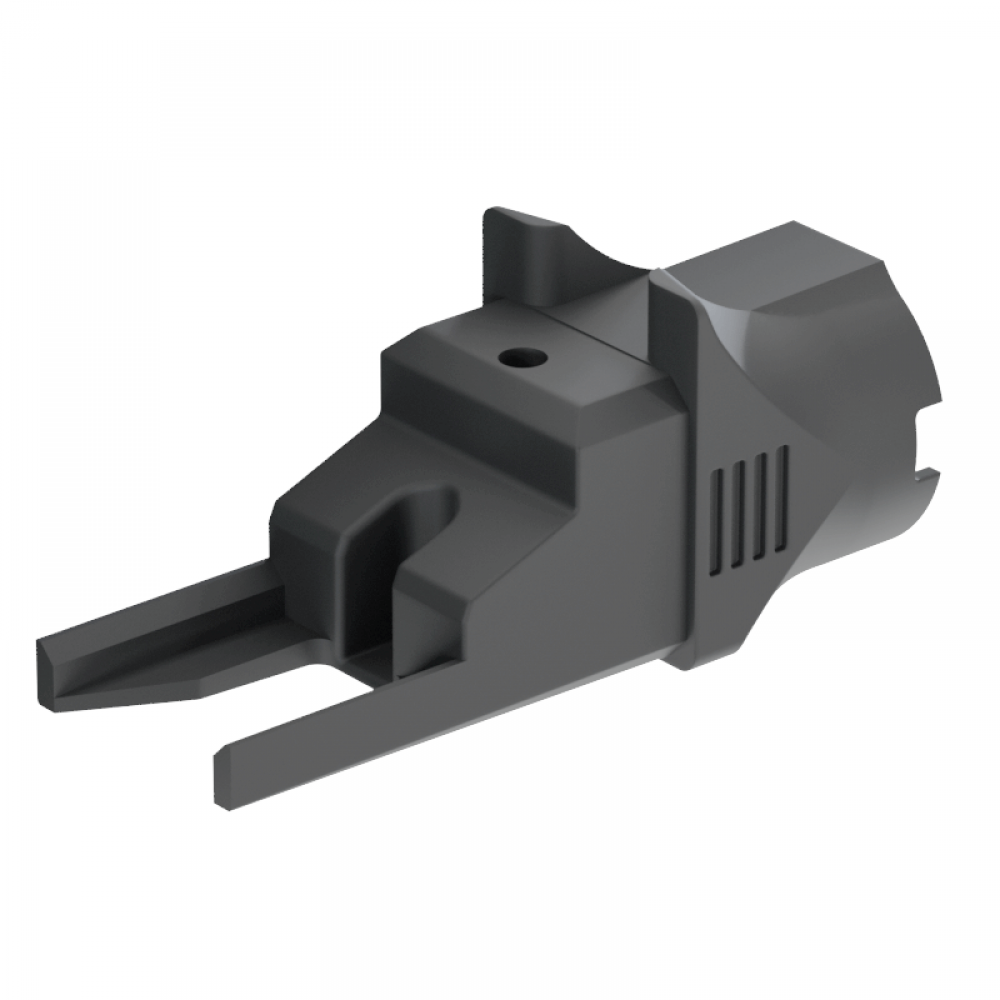 - Тесное прилегание: Клык заднего вкладыша ствольной коробки плотно прилегает к внешней части адаптера, что обеспечивает надежное крепление.