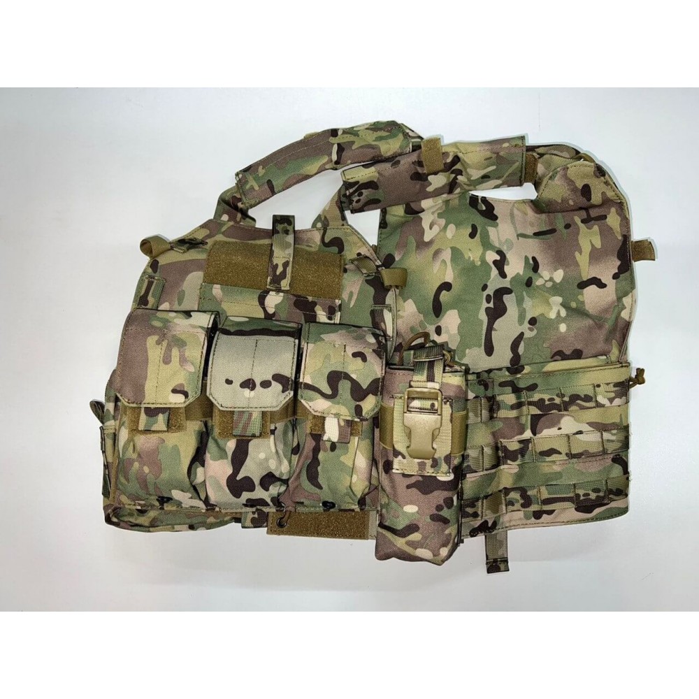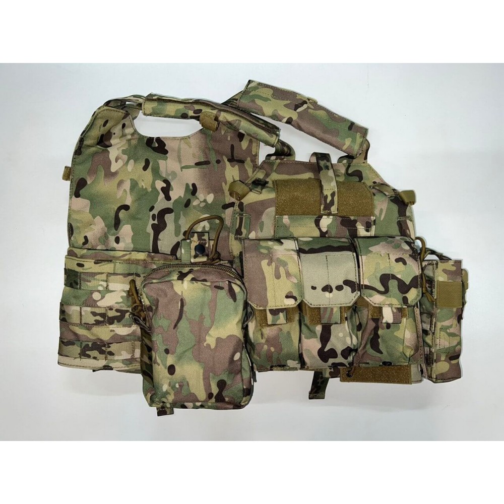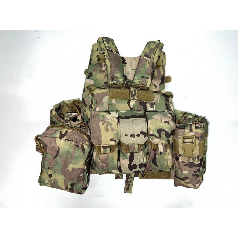 - 3 основных отсека под рожки, 1 под рацию, 1 подсумок сбоку под аптечку, 1 большой дополнительный подсумок на спине с возможностью переустановки на бока
